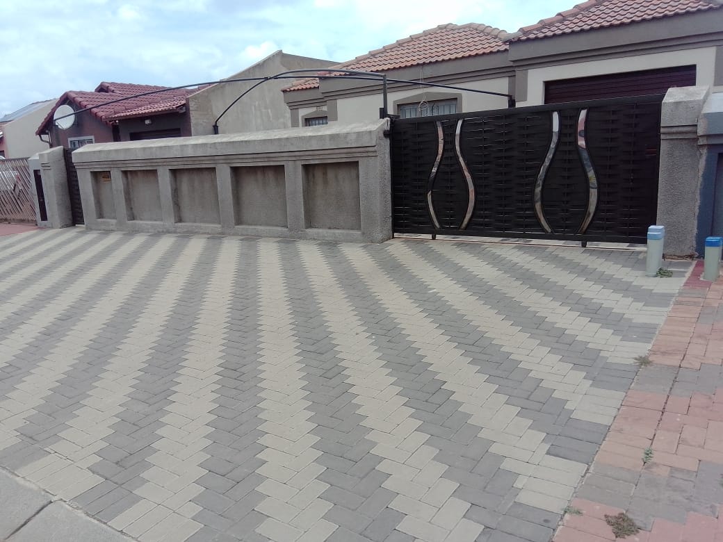 This home offers open plan fitted kitchen and lounge area, 3 bedrooms with built-in wardropes and 2 bathrooms, single garage with a drive through. the home is fully paved and walled with gates